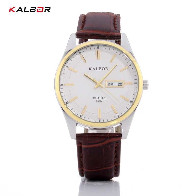 Kalbor Brand Men S Watches Pu Leather Quartz Wrist Watch Casual Male Luxury Golden Rim Waterproof Sport Watch English Date Clock Quartz Watches Aliexpress